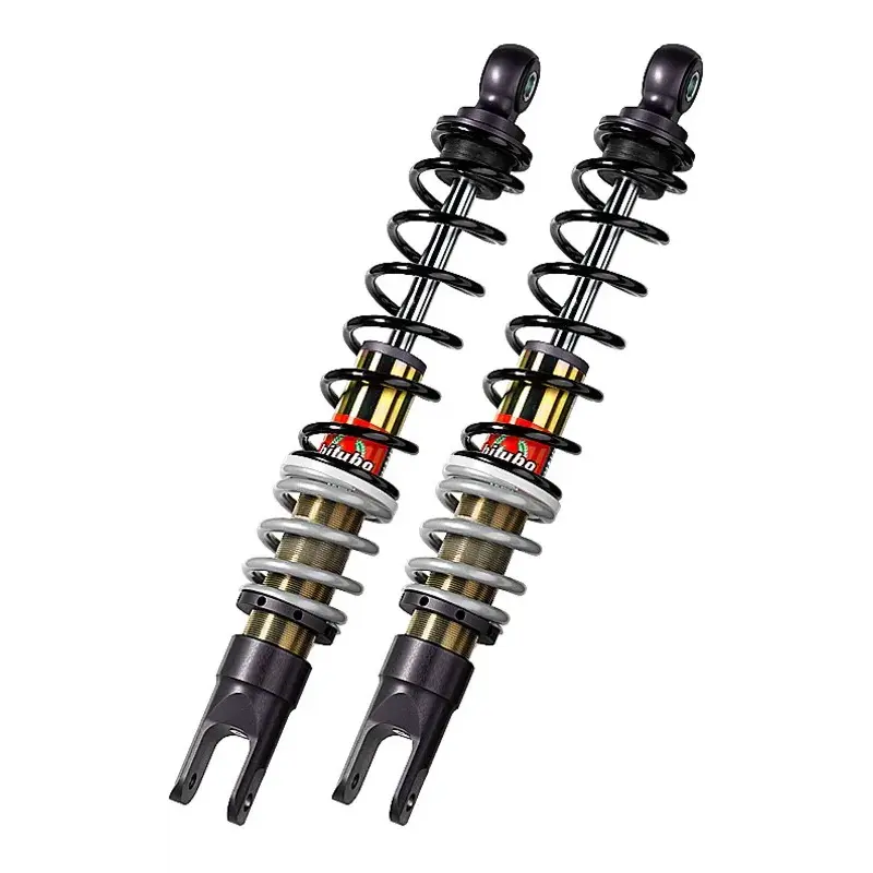 Amortisseur pour scooter de type mono-chambre, pressurisé au gaz (azote), avec piston flottant séparateur. Calibrage spécifique pour chaque modèle de scooter. Le système à double ressort assure un confort initial et en même temps une progression des forces qui garantit une fonctionnalité maximale sur terrain accidenté. En fonction de l'application (type de scooter) YGB existe en version : 01 ressort rouge/noir, pour les véhicules de style sportif ; 02 ressort noir/gris, davantage indiqué pour les scooters classiques. CARACTERISTIQUES TECHNIQUESCorps amortisseur et tige en acier traité à haute résistance, têtes supérieures et inférieures et chambre extérieure en aluminium produites dans la masse par usinage CNC.