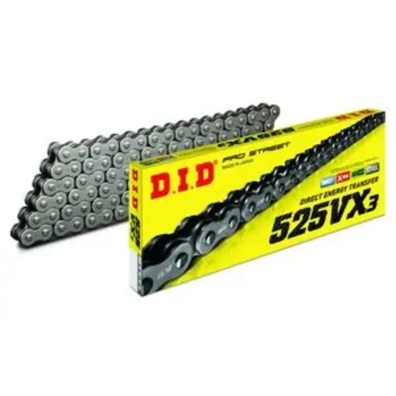 La série des chaînes VX D.I.D inclus les 428VX, 520VX3, 525VX3, et 530VX3 proposées pour de nombreuses applications street et off-road, de 350cc à 1100cc.