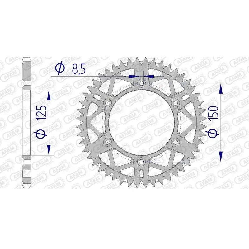 Les couronnes alu AFAM sont fabriquées à partir d'un alliage associant poids réduit et résistance. La qualité d'usinage et la précision du taillage font d'AFAM une référence mondiale incontournable pour les éléments de transmission moto.