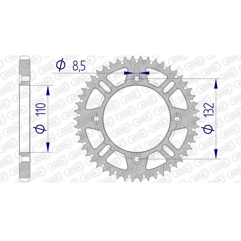 Les couronnes alu AFAM sont fabriquées à partir d'un alliage associant poids réduit et résistance. La qualité d'usinage et la précision du taillage font d'AFAM une référence mondiale incontournable pour les éléments de transmission moto.
