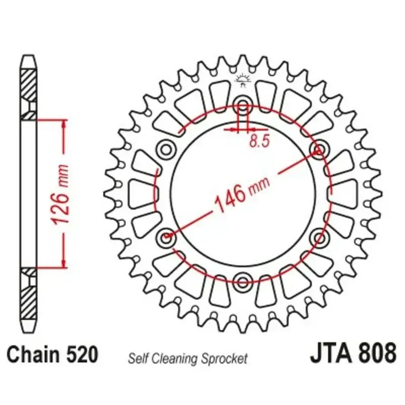 Couronne JT SPROCKETS aluminium ultra-light anti-boue 808 - 520