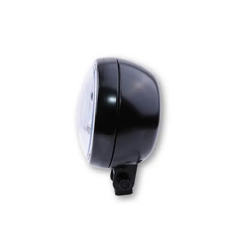 Phare LED HIGHSIDER Reno Type 3, 7 pouces, boîtier métallique, glace transparente, montage latéral, homologué E.Projecteur innovant à LED de puissance avec fonction feu de position et glace transparente. Le boîtier métallique ovale est doté d'un réflecteur asymétrique chromé - homologué uniquement pour la circulation à droite.