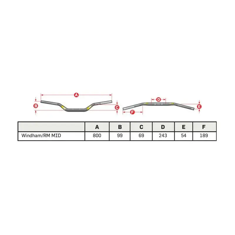 Guidon avec barre PRO TAPER Seven Height Windham/RM MID noir - Ø22,2 mm