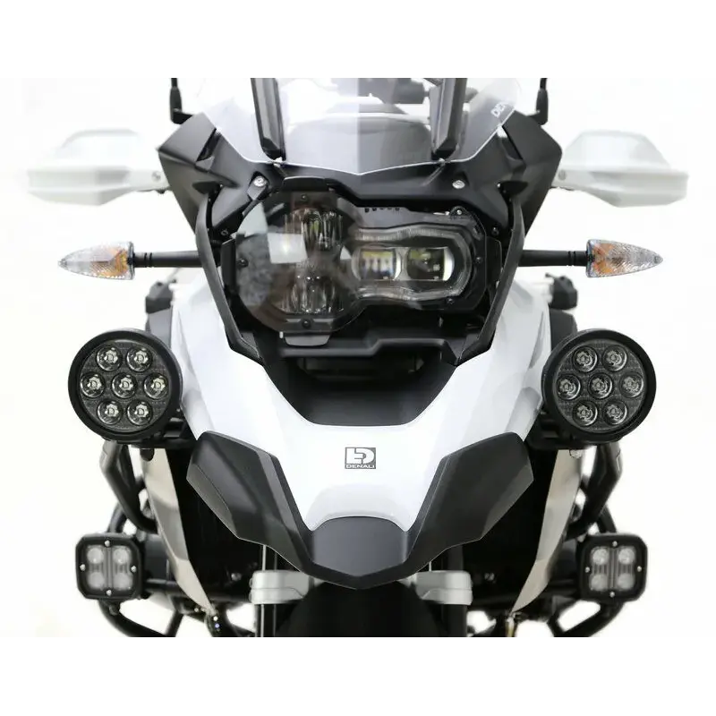 Découpé au laser dans de l'acier et couvert d'un revêtement noir, ce support léger est à la fois solide et attrayant. Le kit permet d'installer n'importe quel éclairage LED Denali sur votre moto.