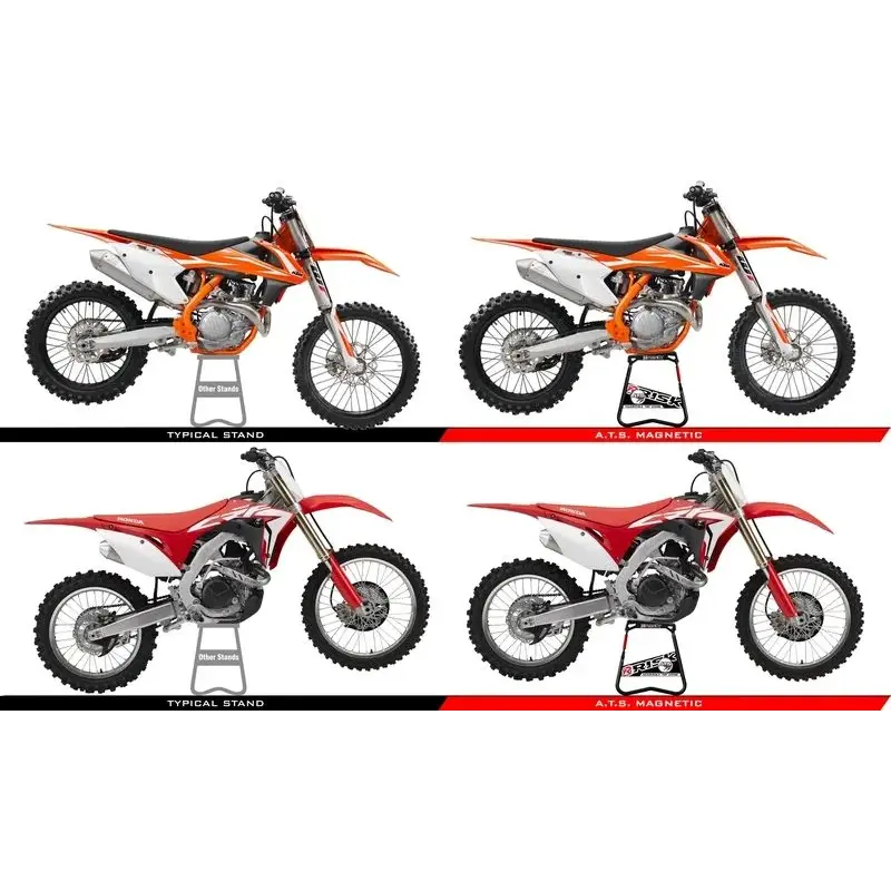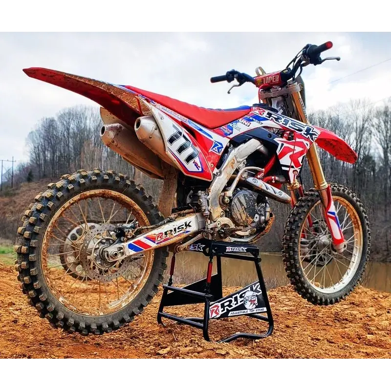 Le châssis de chaque moto cross est conçu différemment et par conséquent tout les modèles ne sont pas à niveau sur un lève moto traditionnel. Le pneu avant ou arrière touche souvent le sol. Le lève moto Risk Racing résout ce problème.