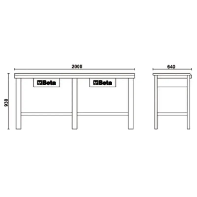 Établi de travail BETA à deux tiroirs avec serrure