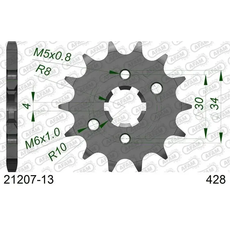 Pignon AFAM acier standard 21207 - 428 - 13 dents