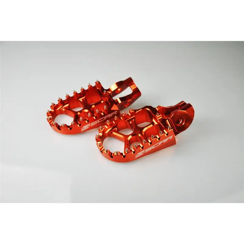 Les repose-pieds Motocross Scar sont le résultat de plusieurs années de recherche et de test avec des teams usines. Ils sont 40% plus léger et 20% plus résistant que les repose-pieds Motocross d'origines. Fabriqué en commande numérique dans un aluminium aéronautique de haute qualité. 18 inserts fabriqué dans un acier inoxydable haute résistance pour une solidité et un grip accrue.
