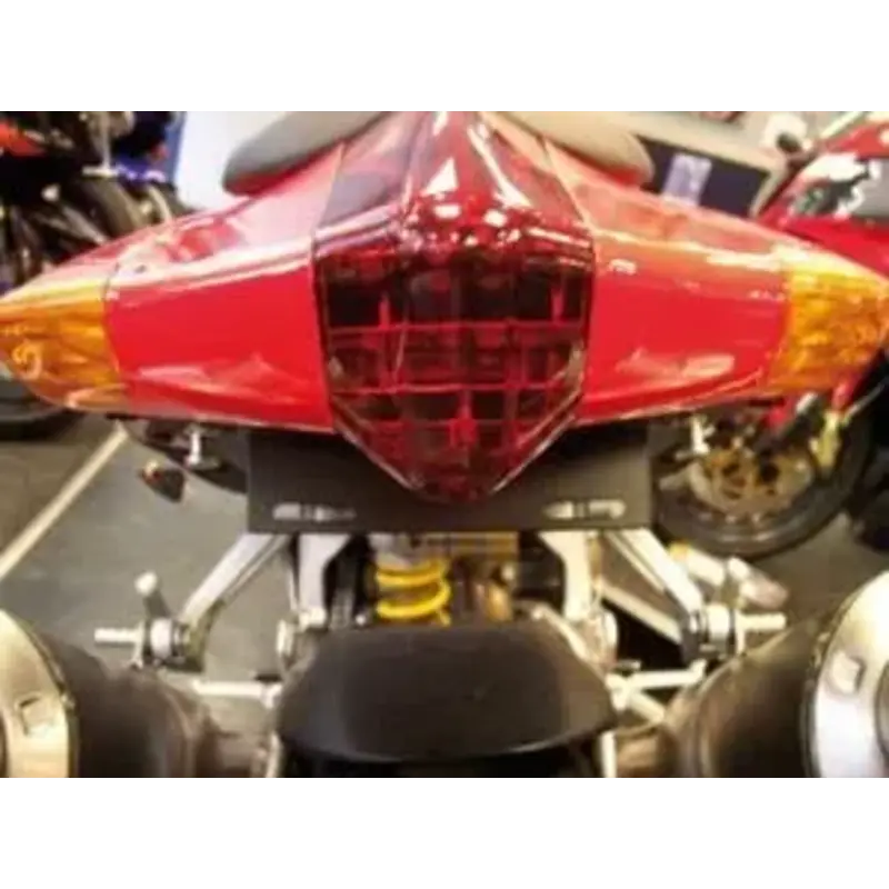 Les supports sont fournis avec un éclairage de plaque à leds homologué. La plupart des modèles permettent de conserver les clignotants d'origine. Le cas echéant des micro- clignotants homologués sont fournis.