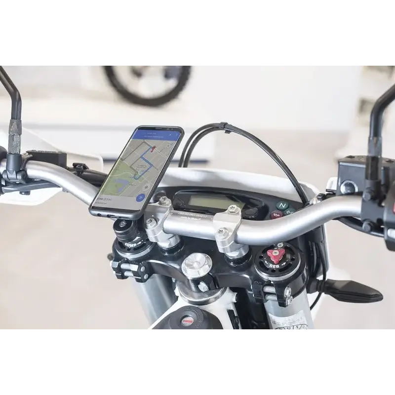 Avec le SP Connect Moto Set, vous pouvez fixer votre portable en quelques secondes à votre moto. Montez la fixation pour moto au guidon de votre moto et vous pourrez en quelques secondes fixer votre étui de portable SP Connect (ou UNIVERSAL INTERFACE) en le plaçant sur le support et en le verrouillant par une rotation à 90° dans le sens des aiguilles d´une montre.