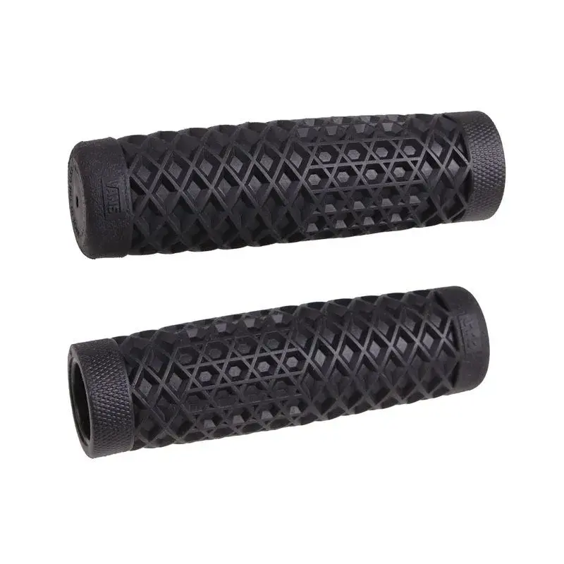 Deux fabricants sud californien ce sont réunis pour créer un design à la fois classique et moderne pour votre V-Twin. Conçu par Cult, les revêtements Vans/Cult V-Twin possède le design gaufré avec un subtil centre bombé, pour une ergonomie et une absorption des vibrations améliorée. Chaque paire est fabriquée chez ODI, utilisant les propriétés techniques des composés de gomme propre à la marque, procurant un excellent contrôle par tout temps.
